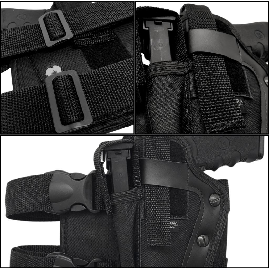 Coldre Canhoto (Lado Esquerdo) Robocop com Cinto Tático Ilhós | Ajustável Militar Verde e Preto