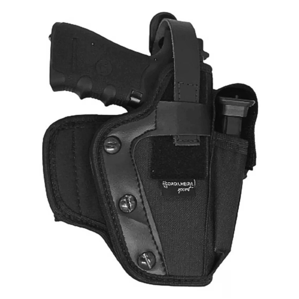 Coldre Destro (Lado Direito) Panqueca Parafuso c/ Porta Magazine Cintura Preto + Cinto Tático N/A