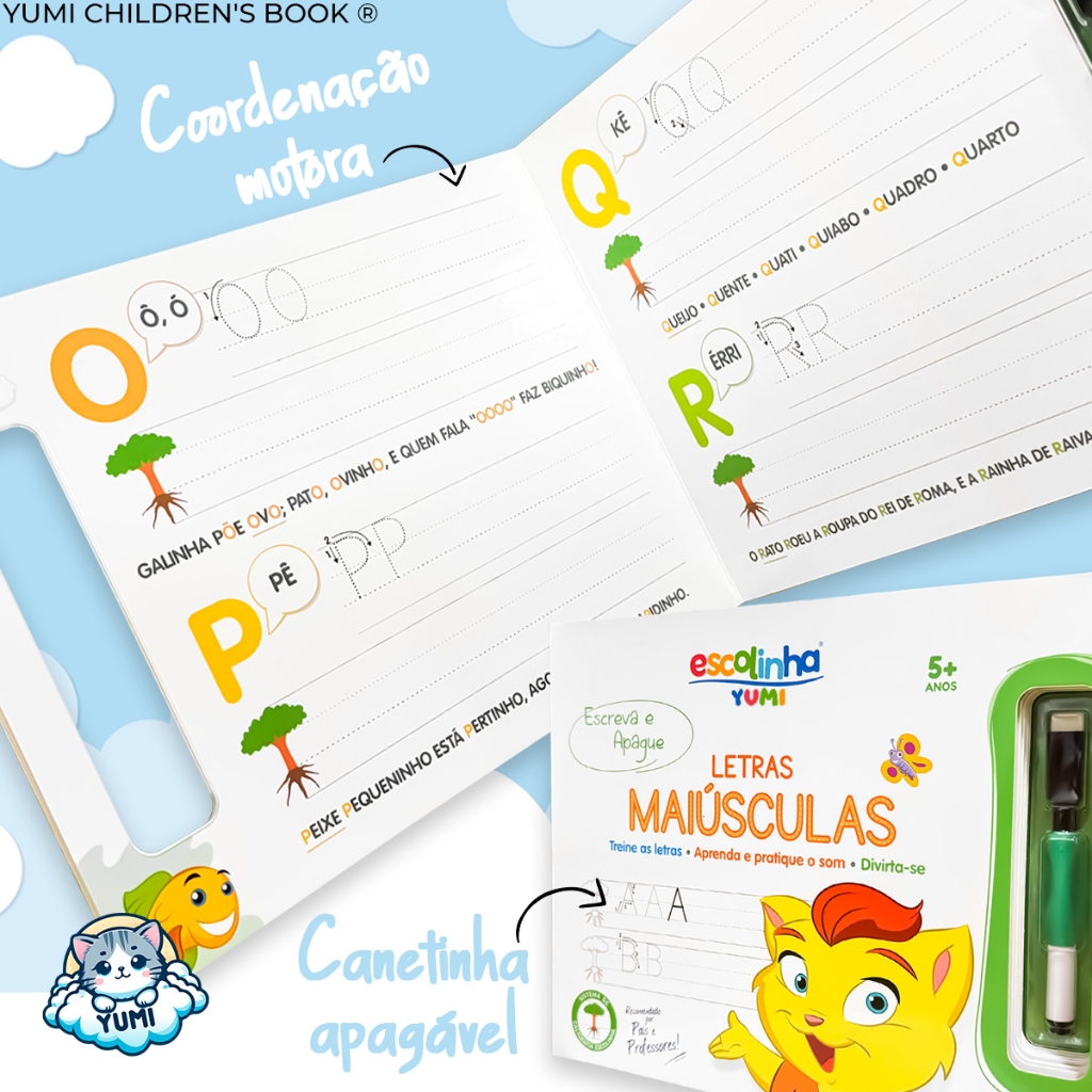 Coleção Alfabetização Escolinha - Livro Caderno De Caligrafia Infantil Caneta Ergonómica Apagável - Edição Premium