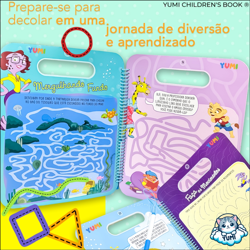 Coleção Alfabetização - Livro Caderno De Caligrafia Infantil Caneta Apagável - Espiral Maletinha + de 70 Atividades