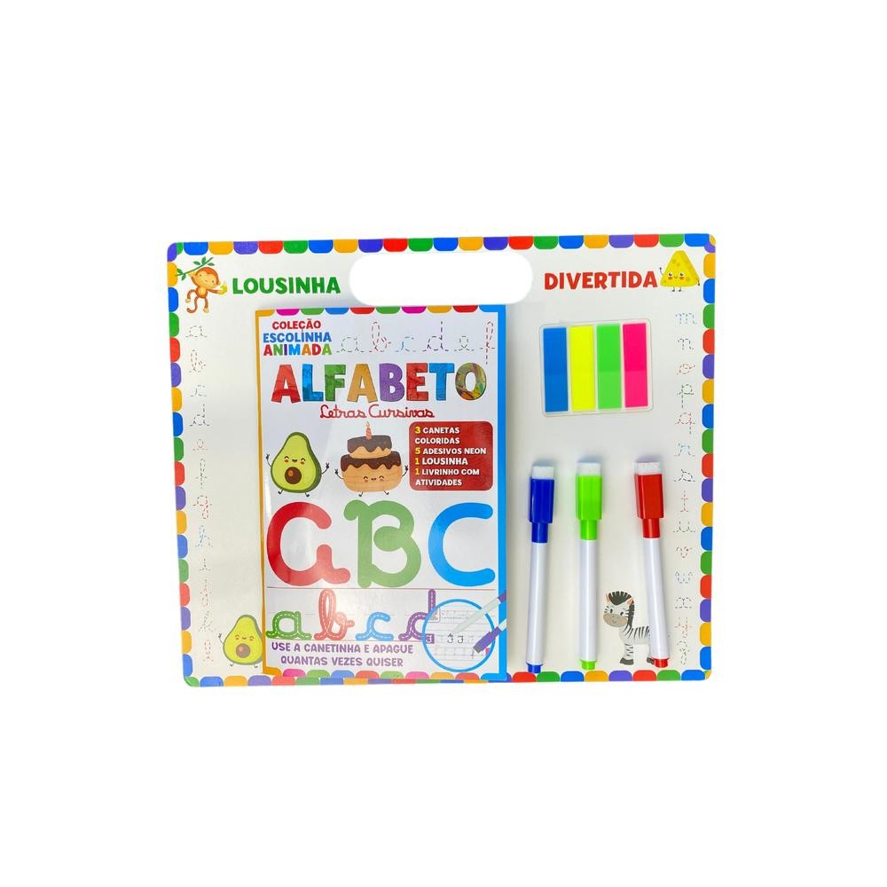 A "Coleção Escolinha Animada - Alfabeto" é um conjunto educativo e interativo projetado para introduzir as crianças às letras do alfabeto de forma divertida e envolvente. Este kit completo inclui 3 canetas, 5 adesivos neon, 1 lousinha e 1 livro com atividades, proporcionando uma experiência de aprendizado prática e dinâmica. As atividades lúdicas e os exercícios práticos incentivam as crianças a reconhecerem e escreverem as letras, melhorando suas habilidades linguísticas e motoras. Repleto de ilustrações coloridas e instruções claras, cada componente é pensado para tornar o processo de aprendizagem agradável e estimulante.