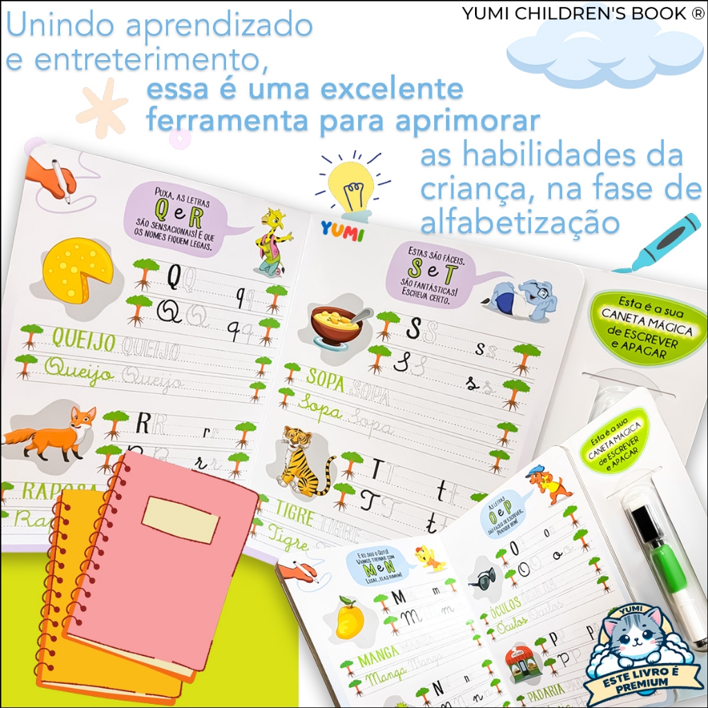 Coleção Livro Alfabetização Infantil Números Alfabeto Divertido: Escreva E Apague + Caneta Mágica