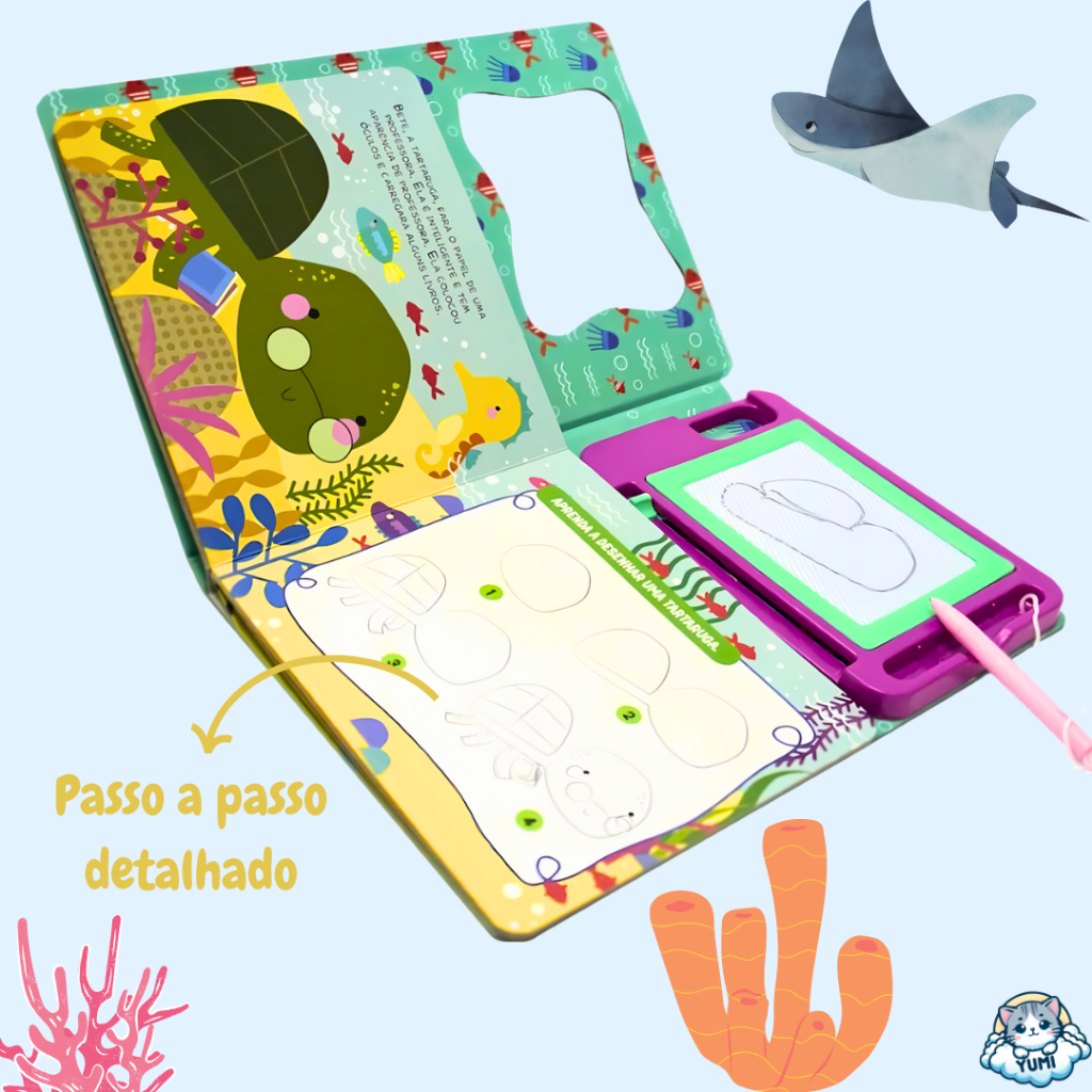 Coleção Livro De Desenho Infantil Com Lousa Mágica Animais Dinossauros Unicórnios- Desenhe E Apague