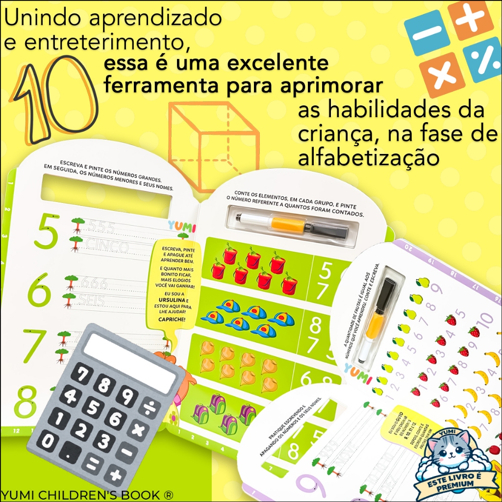 Coleção Livro Mágico Premium Aprendendo e Brincando C/ Caneta Apagável Números Letras Alfabetização