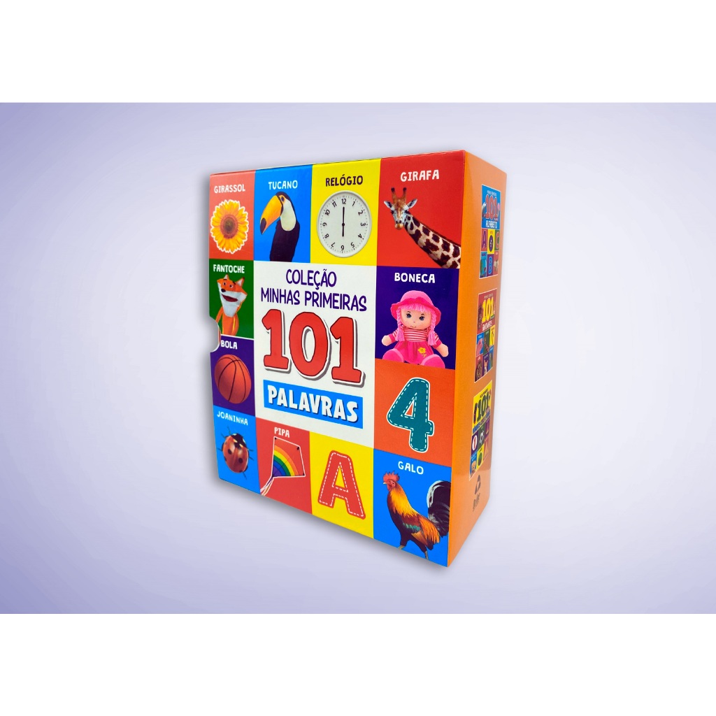 Projetada para ensinar de maneira lúdica e divertida, a coleção ajuda as crianças a expandir seu vocabulário e aprender novas palavras. Cada livro se concentra em um tópico específico para permitir que as crianças explorem diferentes áreas de conhecimento e linguagem. Minhas Primeiras 101 Palavras – Alfabeto ajuda as crianças a aprender o alfabeto e as palavras associadas a cada letra. Minhas Primeiras 101 Palavras – Animais introduz os animais às crianças, permitindo que associem imagens de animais a seus nomes. Meus Primeiros 101 Objetos – Números, Cores e Formas ensina sobre números, cores e formas usando objetos do cotidiano. Essa é uma maneira educativa e envolvente de apresentar palavras, conceitos e informações importantes para as crianças em uma fase inicial de desenvolvimento. Através de ilustrações cativantes e abordagem lúdica, as crianças podem aprender enquanto se divertem.