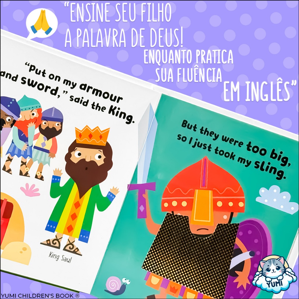 Desvende a Fé e o Inglês com a Coleção "Minhas Primeiras Histórias Bíblicas Toque e Sinta"! Para pais que desejam unir o ensinamento de valores bíblicos com a introdução do idioma inglês desde cedo, apresentamos a coleção "Minhas Primeiras Histórias Bíblicas Toque e Sinta". Mais do que livros infantis, são tesouros sensoriais que abrem as portas para a fé e o aprendizado bilíngue, de forma divertida e envolvente. Uma experiência sensorial e educativa Cada livro desta coleção premium foi cuidadosamente elaborado para estimular os sentidos e a curiosidade dos pequenos: -Inglês desde Cedo: Uma oportunidade perfeita para pais que querem iniciar seus filhos no inglês de maneira natural e divertida, com histórias conhecidas que facilitam a compreensão. -Acabamento Premium: Cada exemplar é uma obra de arte, com acabamentos em glitter que encantam os olhos e bordas arredondadas, pensadas para a segurança das mãozinhas. -Livro Sensorial "Toque e Sinta": A magia acontece nas páginas! Elementos táteis convidam a criança a tocar e sentir diferentes texturas, tornando a leitura uma experiência imersiva e memorável. -Alça para Transporte: Projetados para serem companheiros inseparáveis, cada livro possui uma alça resistente, ideal para os pequenos levarem suas histórias favoritas para onde quiserem. Histórias Bíblicas Clássicas, com um Toque Mágico A coleção inclui seis das mais amadas histórias bíblicas, recontadas em inglês de forma cativante: Noah and the Ark (Noé e a Arca): Uma épica jornada sobre a obediência de Noé a Deus, a construção de uma gigantesca arca para salvar sua família e os animais do grande dilúvio, e a promessa de um arco-íris. As crianças sentirão a textura da madeira da arca e a suavidade das nuvens. Daniel and the Lions (Daniel na Cova dos Leões): A inspiradora história de Daniel, que manteve sua fé em Deus mesmo quando foi lançado em uma cova com leões famintos. Uma lição sobre coragem e a proteção divina, com texturas que representam a juba dos leões e as paredes da caverna. The Story of Christmas (A História do Natal): Celebre o milagre do nascimento de Jesus. Da jornada de Maria e José a Belém, ao aparecimento dos anjos e a visita dos pastores e reis magos, a história mais doce da Bíblia ganha vida. Toque na manta de Jesus e no brilho da estrela! David and Goliath (Davi e Golias): A emocionante narrativa do jovem pastor Davi, que, com fé e uma simples pedra, derrubou o gigante Golias e salvou seu povo. Uma poderosa lição sobre coragem e que o tamanho não é tudo, com texturas que simulam a armadura de Golias e o pelo das ovelhas de Davi. Joseph and the Dream Coat (José e o Manto de Muitas Cores): A história de José, seus sonhos, o ciúme de seus irmãos e sua incrível jornada do Egito à posição de governador. Uma lição sobre perdão, perseverança e o plano de Deus, com o toque suave e colorido do manto de José e a aspereza do deserto. Jonah and the Big Fish (Jonas e o Grande Peixe): A inusitada aventura de Jonas, que tentou fugir do chamado de Deus e acabou na barriga de um grande peixe. Uma lição sobre obediência, arrependimento e segundas chances, com texturas que representam as escamas do peixe e a água do mar. Mais que livros, um legado de fé e conhecimento "Minhas Primeiras Histórias Bíblicas Toque e Sinta" é mais que uma coleção; é um investimento no desenvolvimento integral da criança. Ao proporcionar uma experiência rica em aprendizado, valores e diversão, você está plantando sementes de fé e abrindo caminhos para um futuro bilíngue. Garanta já a coleção completa e dê de presente um mundo de descobertas! Importante: Ao fazer seu pedido, lembre-se de escolher o livro desejado antes de finalizar a compra. Este anúncio é unitário e não inclui a coleção completa.