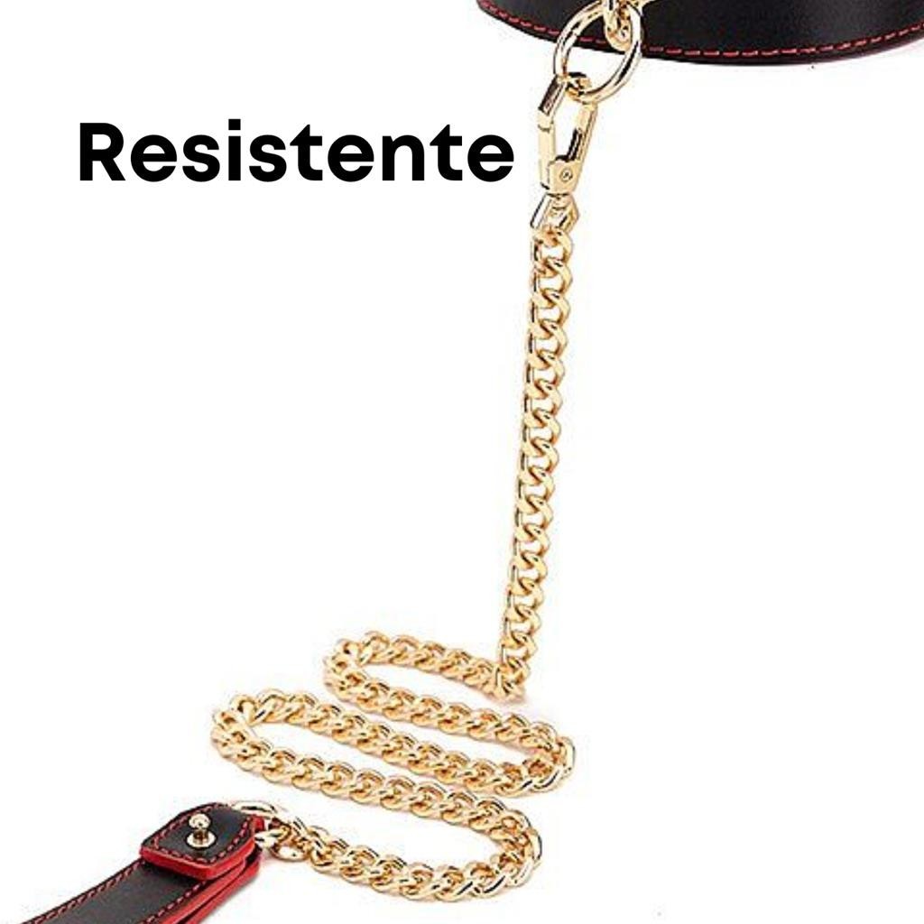 Coleira com Guia BDSM e Corrente Dourada Luxo
