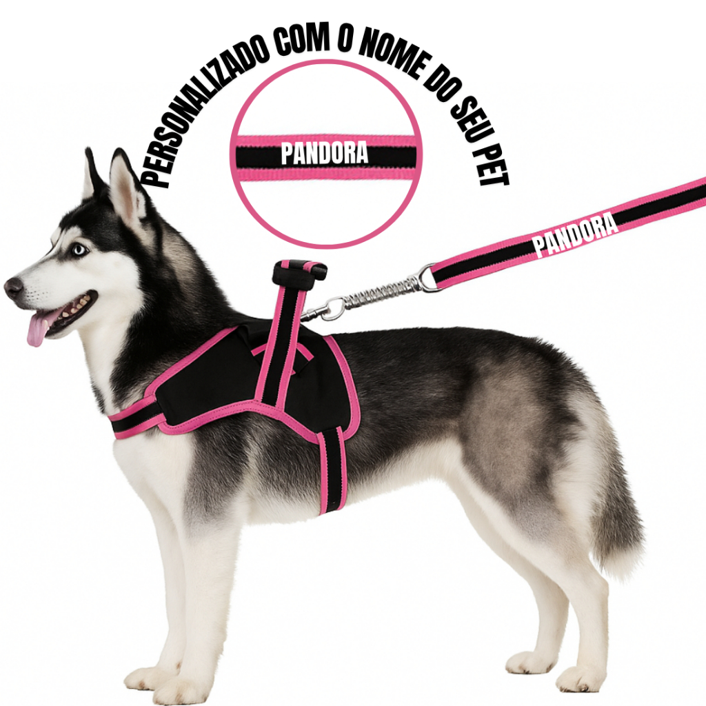 Coleira e Guia para cachorro nome personalizado Peitoral pequeno médio grande porte super resistente