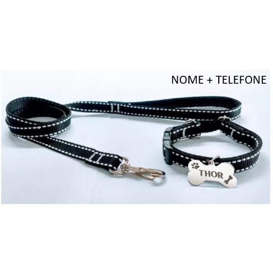 Coleira Gravada NOME E TELEFONE E Guia de Passeio
