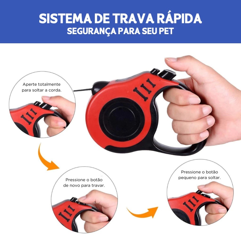 Coleira Guia Retrátil para Pets 5 Metros com Trava Resistente até 12kg Cães e Gatos