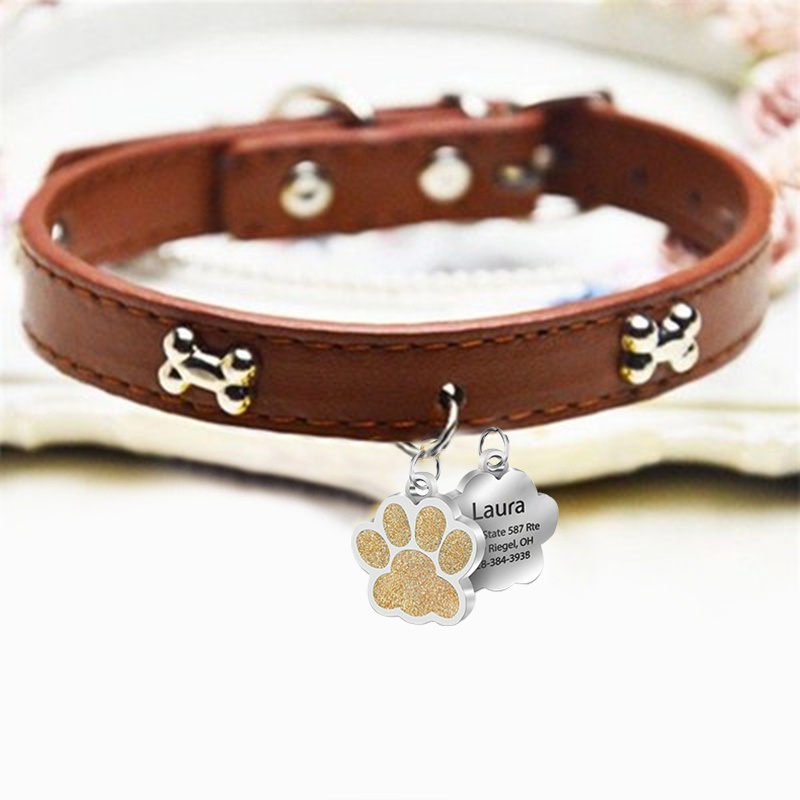 Coleira Identificação Gargantilha Tira Placa Nome telefone Gravado a Laser Gato Cachorro Pet