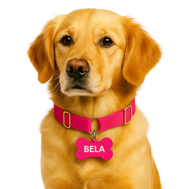 Coleira para Cachorros Yoo Pets com Plaquinha Gravada Nome e Telefone Regulável