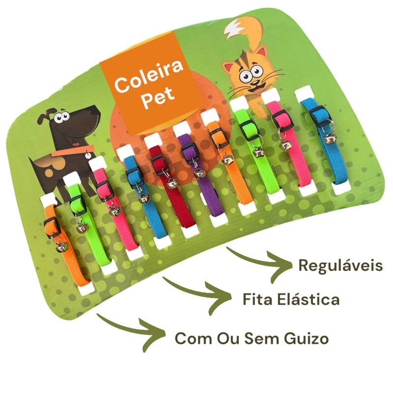 Coleira Para Gato Cartela com 10 Unidades Reguláveis Com Guizo Sino Preço Atacado