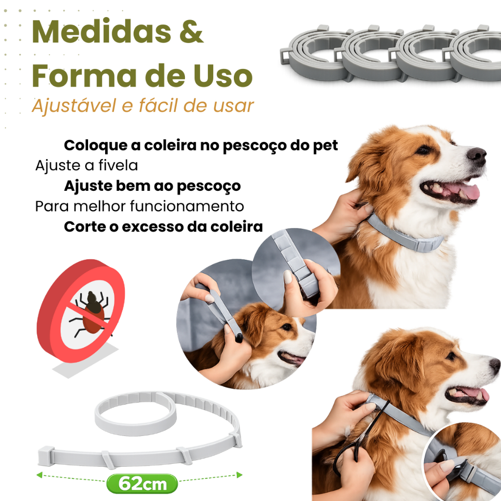Coleira Para Prevenção De Pulgas E Carrapatos-Ajustável À Prova D'água Cães Gatos