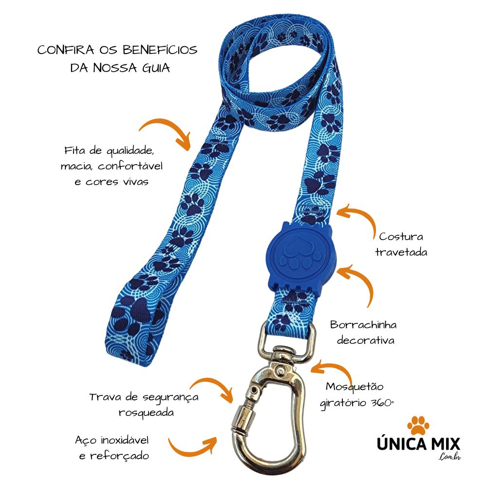 Coleira peitoral americano para cachorro com guia e trava de segurança rosqueada e com mola. Fitas de qualidade premium, cores vivas com linda estampa de patinhas em tons de azul. Este produto é orgulhosamente nacional com envio imediato. A colocação no seu pet é simples e rápida, garantindo passeios seguros e confortáveis. Confira os benefícios do nosso PEITORAL AMERICANO » Materiais de alta durabilidade; » Fita de polietileno, acetinada que proporciona mais conforto; » Borrachinha decorativa no peitoral e guia; » Costura industrial; » Argolas resistentes e soldadas; » Metais inoxidáveis; » Regulador de tamanho; » Mosquetão com base giratória 360º; » Trava de segurança dupla, com mola e rosqueada; » Fecho automático em PU. Viu quantas vantagem para manter seu amiguinho confortável e seguro durante os passeios? Peça agora o seu. As cores do produto podem sofrer pequenas variações em função das características do monitor e do ambiente durante sua visualização. Você irá Receber: 01 - Peitoral americano para passeio 01 - Guia com 1 metro Confira abaixo a tabela de medidas As sugestões de pesos, podem variar conforme a estrutura corporal do seu pet. CONSIDERE MEDI-LO. » Tamanho PP Largura da fita: 15mm Ajuste: 28 a 40 cm Para cães até 2 kgs » Tamanho P Largura da fita: 15 mm Ajuste: 33 a 50 cm Para cães de 2 a 5 kgs » Tamanho M Largura da fita: 20 mm Ajuste: 38 a 60 cm Para cães de 5 a 16 kgs » Tamanho G Largura da Fita: 20 mm Ajuste: 45 a 72 cm Para cães de 16 a 30 kgs » Tamanho GG Largura da Fita: 25 mm Ajuste: 55 a 85 cm Para cães de 30 a 50 kgs Perguntas Frequentes - Quando é feito o envio? Todos os produtos são a pronta entrega, enviamos em até 24 horas úteis; - Tenho garantia do produto? Sim! Oferecemos 30 dias de garantia contra qualquer defeito de fabricação; - Posso devolver se eu não gostar? Pode sim! Você tem até 7 dias após o recebimento para solicitar a devolução e reembolso; - Produto vem com nota fiscal? Sim! Enviamos com nota fiscal; - Quanto tempo chega em minha casa? Depende da localização de cada cliente, em média, tem chegado com 4 dias úteis. Agora é só fazer sua compra. Enviamos seu pedido em até 24 horas úteis ou no mesmo dia dependendo da hora da confirmação de pagamento. Ficou alguma dúvida? Fale conosco pelo chat. Tags: Shih Tzu, Maltês, Pug, Buldogue Francês e Inglês, Yorkshire Terrier, Pinscher, Chihuahua, Spitz Alemão ou Lulu da Pomerânia, Bichon Frisé, Cocker Spaniel, Basset, Beagle, Poodle, Lhasa Apso, Spaniel japonês, Toy Fox Terrier, Fox Paulistinha, Affenpinscher, Jack Russell Terrier, Corgi, Griffon de Bruxelas, Boston Terrier, Schnauzer, Golden Retriever, Chow-Chow, Labrador, Pastor Alemão ou Belga, Pit Bull, Husky Siberiano, Akita, Border Collie, Boxer, Cane corso, Doberman, Dogo argentino, Dogue Alemão, Fila brasileiro, American Bully, Bernese, Bloodhound