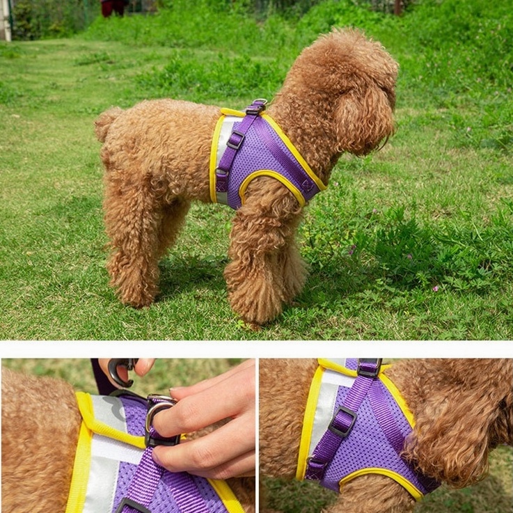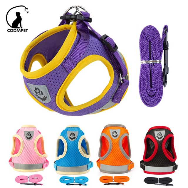 Coleira Peitoral Cachorro Arreios e Trela Para Cães Gatos Respirável De Estimação Colete Com Guia