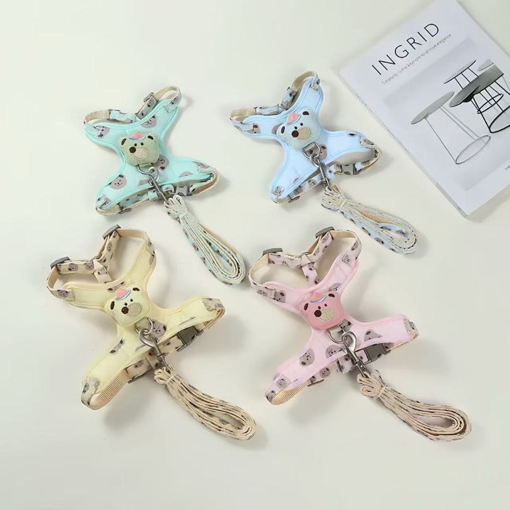 Coleira peitoral Colorida Desenho Ursinho Com Guia Para Cães cachorro e gatos e outros pets YP-2430