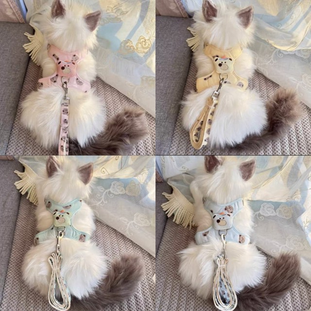 Coleira peitoral Colorida Desenho Ursinho Com Guia Para Cães cachorro e gatos e outros pets YP-2430
