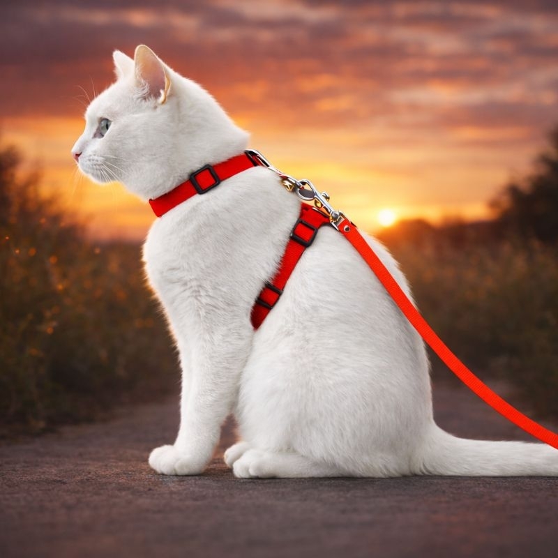 Coleira Peitoral para pet gato 😻 para passear com seu gato contém regulagem sendo ajustável 🦮 guia mede 1.20 mt