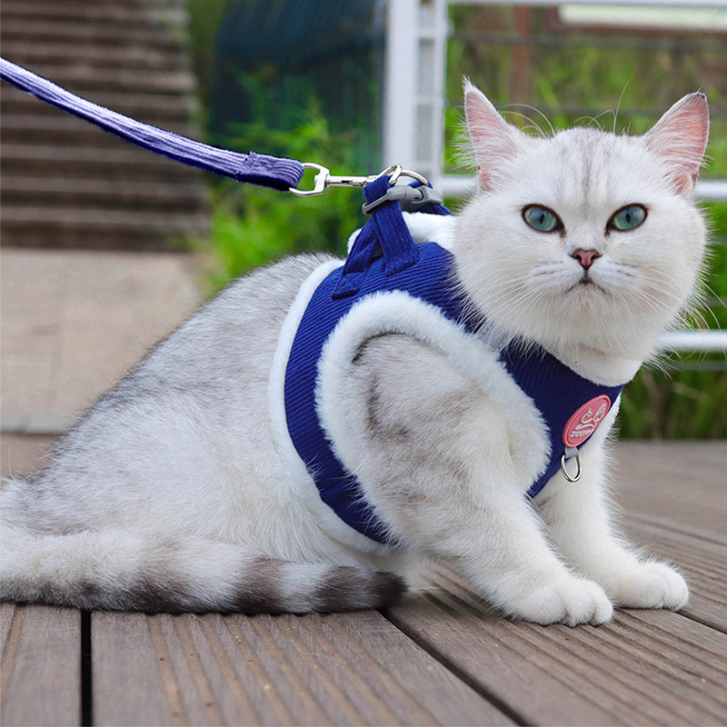 Coleira Peitoral Com Guia Para Animais De Estimação Colete De Pelúcia Confortável Gatos Pequenos