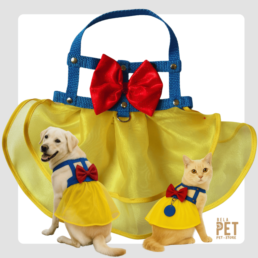 Coleira Peitoral de Saia - Gato ou Cachorro - Acompanha Guia - Personagens