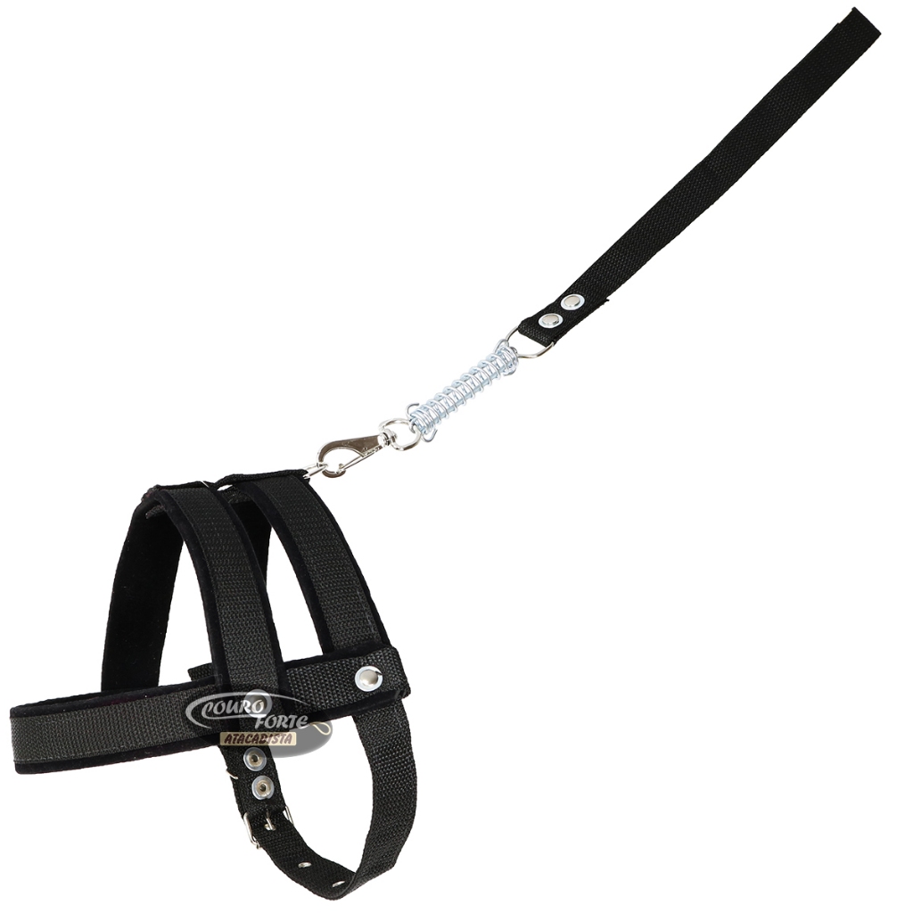Coleira Peitoral Guia Com Mola Porte Médio Grande em Fita e Veludo Super Reforçada