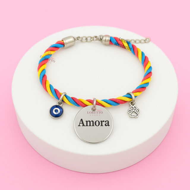 Coleira Pet com Placa de Identificação Aço Inox + Olho Grego e Patinha B10