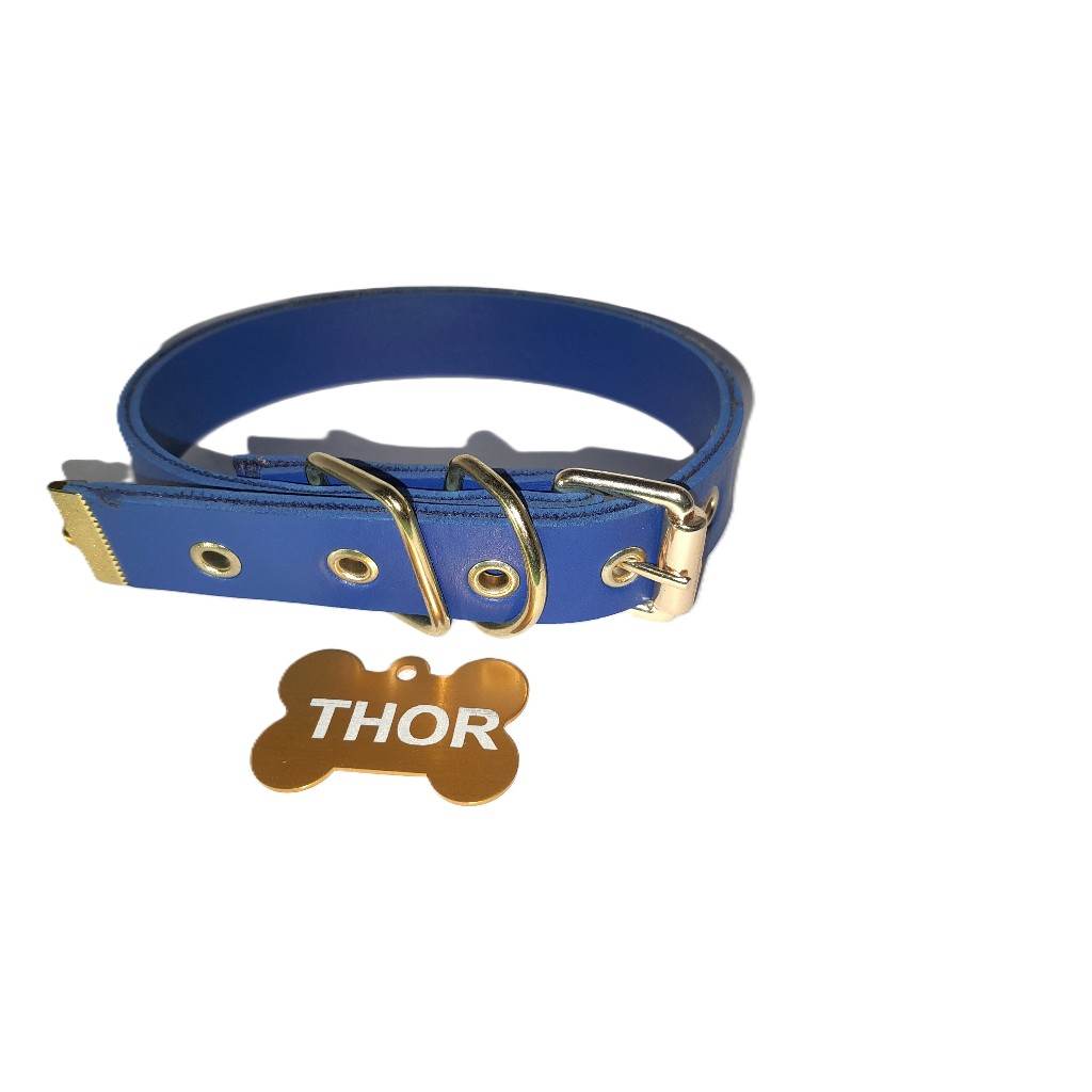 Coleira Pet de Couro com Detalhes Dourados – Gravação Nome e Telefone na Plaquinha