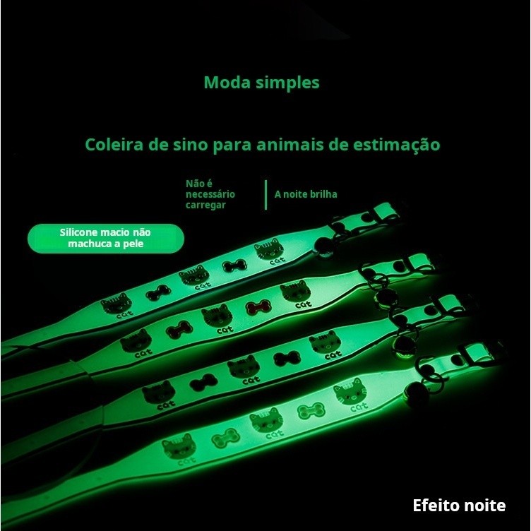 Coleira Pet para Gatos com Sino/Coleiras que brilham no escuro para gatos e cães de pequeno porte, em diversos estilos