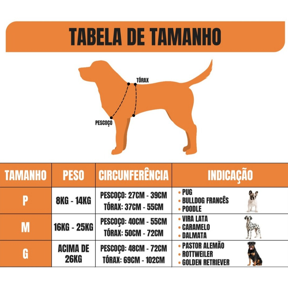 Peitoral Regulagem FAVOR MANDAR O NOME IMEDIATAMENTE APÓS REALIZAR A COMPRA, SE NAO SERÁ ENVIADO SEM O NOME. MANDAR NO CHAT OU COLOCAR NA OBSERVAÇÃO NÃO ACEITAMOS DEVOLUÇÃO, SE O ERRO NÃO FOR NOSSO. ex: escrito errado Para todas as raças, Indicado para pequeno, médio e grande porte Produzidos com fita de polipropileno reforçada, fivela de liga, Guia com Amortecedor (Mola) Material Resistente, super durável, de acordo com o tamanho do cachorro para ajustar Excelente durabilidade, acabamento requintado, prático de colocar no cachorro Acessório removível Acabamento de alta qualidade e bela execução, macio para máximo conforto Tamanhos disponíveis ( Basta medir o tórax do dog e ver qual tamanho ele se enquadra) De 3kg a 50 kg Tamanho P Máximo 65 cm Mínimo 39 cm Tamanho M Máximo 76 cm Mínimo 46 cm Tamanho G Máximo 90 cm Mínimo 53 cm Envio imediato após a compra. Qualquer dúvida estamos à disposição!