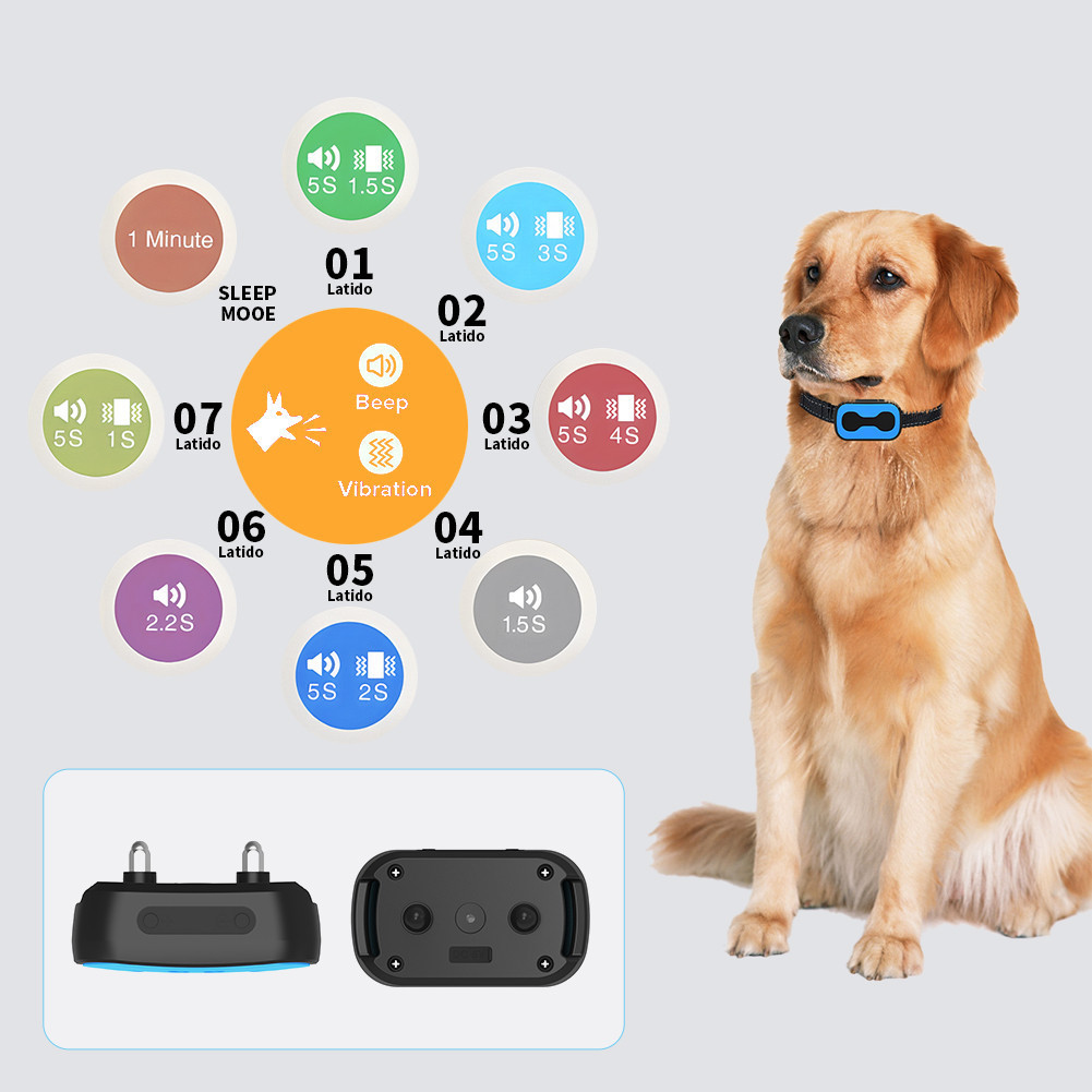 Coleira Recarregável Adestramento Anti Latido Sem Choque Preto Azul