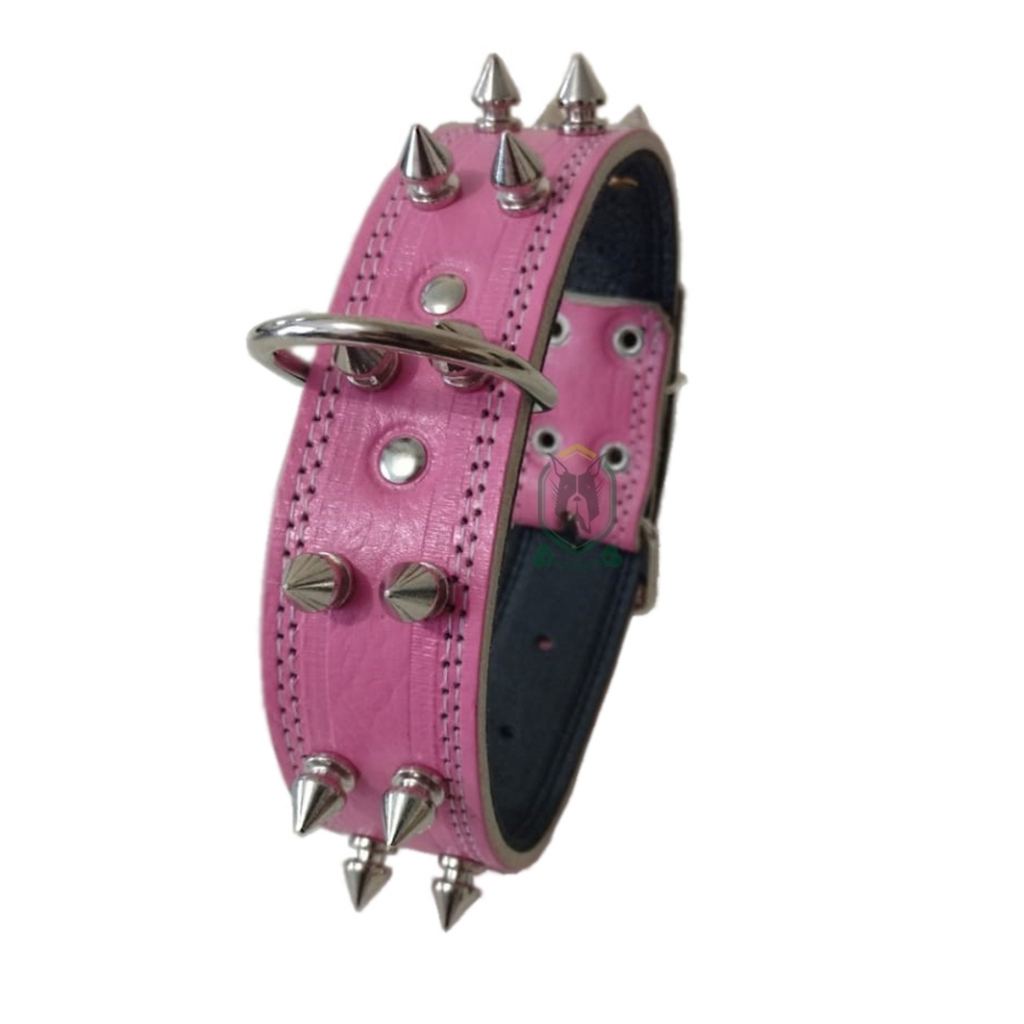 Coleira Spike Couro Filhotes Cachorros Pequenos e Grandes Husky Labrador Pastor Golden American Dobermann Chow Chow