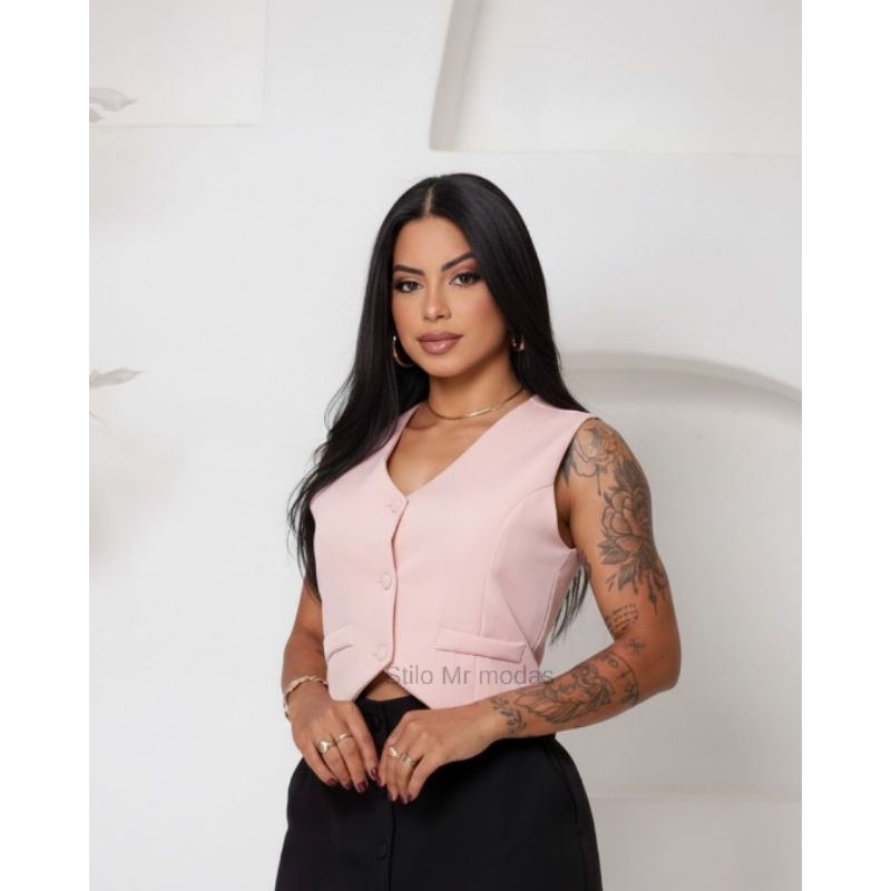 ✨COLETE FEMININO ESTRUTURADO ✨disponivel em diversas cores • Corte: Modelo alfaiataria com design elegante e estruturado. • Decote: Decote em “V”, que alonga o pescoço e valoriza o busto. • Botões: • Três botões frontais forrados no mesmo tecido do colete, trazendo um acabamento mais sofisticado. • Bolsos: • Dois bolsos falsos (decorativos) na parte frontal, que deixam o look mais chic. • Barra: • Acabamento em ponta na parte frontal (formato triangular), que afina a cintura e deixa a peça mais moderna. • Caimento: • Ajuste perfeito ao corpo, com estrutura firme e modelagem moderna. Tamanho P M G GG Tecido : Alfaitaria Premium