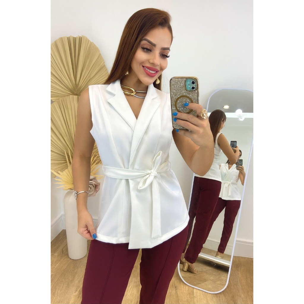 Colete Amarração Com Cinto Alfaiataria Feminino Social Elegante