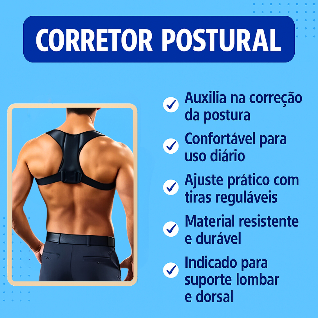 Produto de tamanho único e UNISSEX. - Corretor Com Alta Tecnologia — Melhora sua postura em até 99%. - Potente Contra as Dores — Evita dores na coluna, costas e lombar. - Reduz a Insônia — Melhora a qualidade do sono. - Ação Preventiva — Previne lesões como hérnias e escoliose. - Super Discreto — Invisível sob as roupas. O Corretor Postural Compacto é ideal para aqueles que trabalham muito tempo em uma única posição. Além de ser essencial para quem sofre com dores e incômodos na coluna e região lombar. Cuidar da casa, ir ao trabalho, ficar muito tempo em pé, ou sentado — esses são pequenos exemplos de situações diárias que podem afetar sua postura e prejudicar sua saúde. Uma vida saudável, sem dores, incômodos ou problemas posturais é o que realmente importa, não é mesmo? Com o Corretor Postural Compacto você garante seu bem estar a qualquer momento e em qualquer lugar. É muito completo e ao mesmo tempo invisível sob as roupas, portanto você pode ir ao trabalho, academia ( para atividades leves ), faculdade e qualquer outro lugar. Ser saudável e prevenir problemas na coluna nunca foi tão fácil, é só pegar, ajustar ao corpo e continuar sua rotina. Esse corretor postural é um produto único e exclusivo que faz com que sua postura seja facilmente corrigida. Em até 99% dos casos é possível ver melhoras significativas nas duas primeiras semanas de uso. Além disso, o corretor postural previne problemas na velhice, pois faz um trabalho de prevenção postural que traz inúmeros benefícios a longo prazo. Um produto que verdadeiramente te auxilia e traz qualidade de vida para o seu dia a dia.