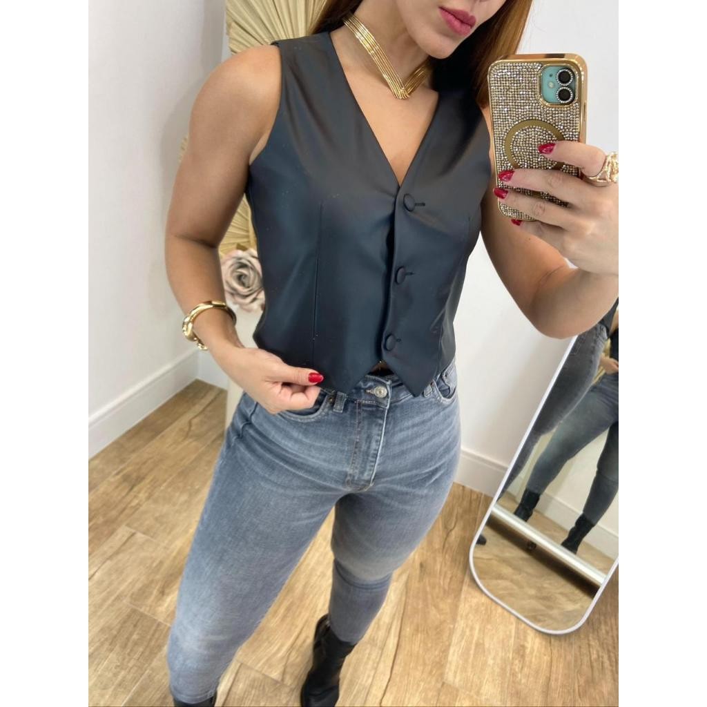 Colete Couro Fake Curto Social Coletinho Decote V Blusa Com Botões