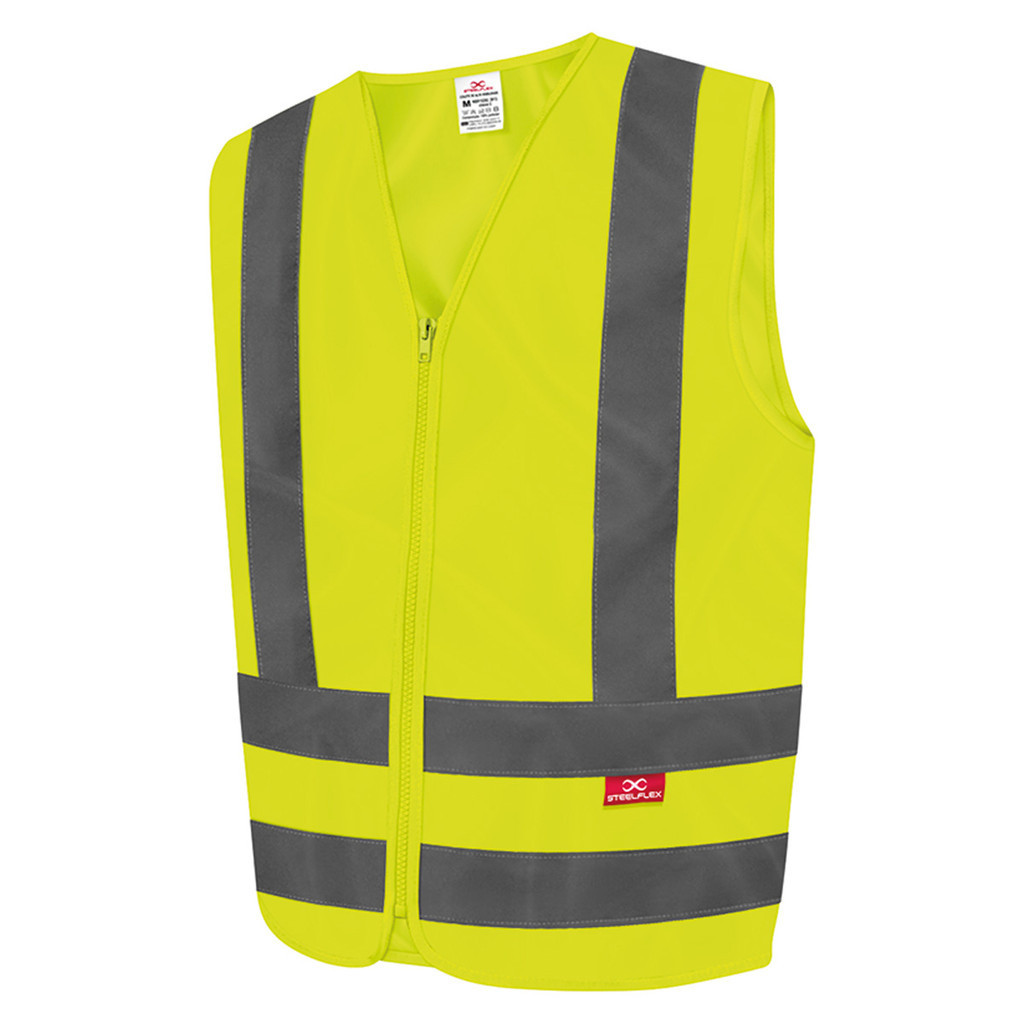 Colete Sem Bolso Liso Refletivo Steelflex COLETE Colete de segurança modelo blusão da Steelflex. Confeccionado em tecido 100% poliéster sem bolsos. Garante alta visibilidade em horários diurnos e norturnos. Feito na cor amarelo fluorescente em tom chamativo e visível. Possui fechamento em zíper e faixas retrorrefletivas. -Atende a classe 2 da norma NBR 15292 2013 INDICAÇÕES DE USO: Em locais de tráfego intenso de veículos. Em locais de tráfego de veículos em alta velocidade. Em condições climáticas adversas, como: neblina, fumaça e chuva. Em ambientes com baixa luminosidade, como: minas, túneis e construções. CONSERVAÇÃO E LIMPEZA: Recomenda-se lavar com água e sabão neutro. Pode-se lavar na máquina, porém na posição "roupas delicadas". A secagem do produto deve ser na sombra, não utilizando máquinas de secar ou fontes de calor. Composição: 100% poliéster. Tamanhos: M / G / XG / XXG