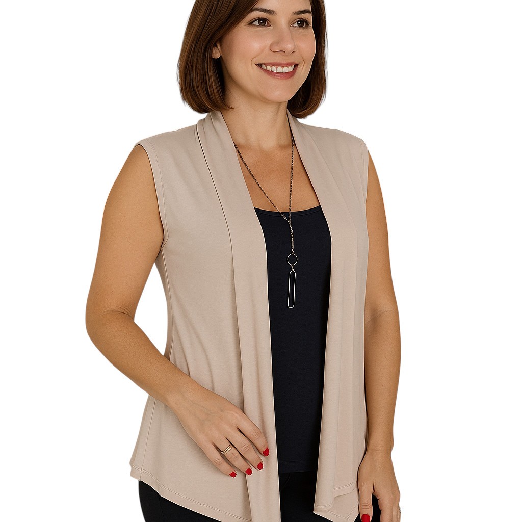 Colete Feminino Elegante Aberto Gola Transpassada em Viscolycra