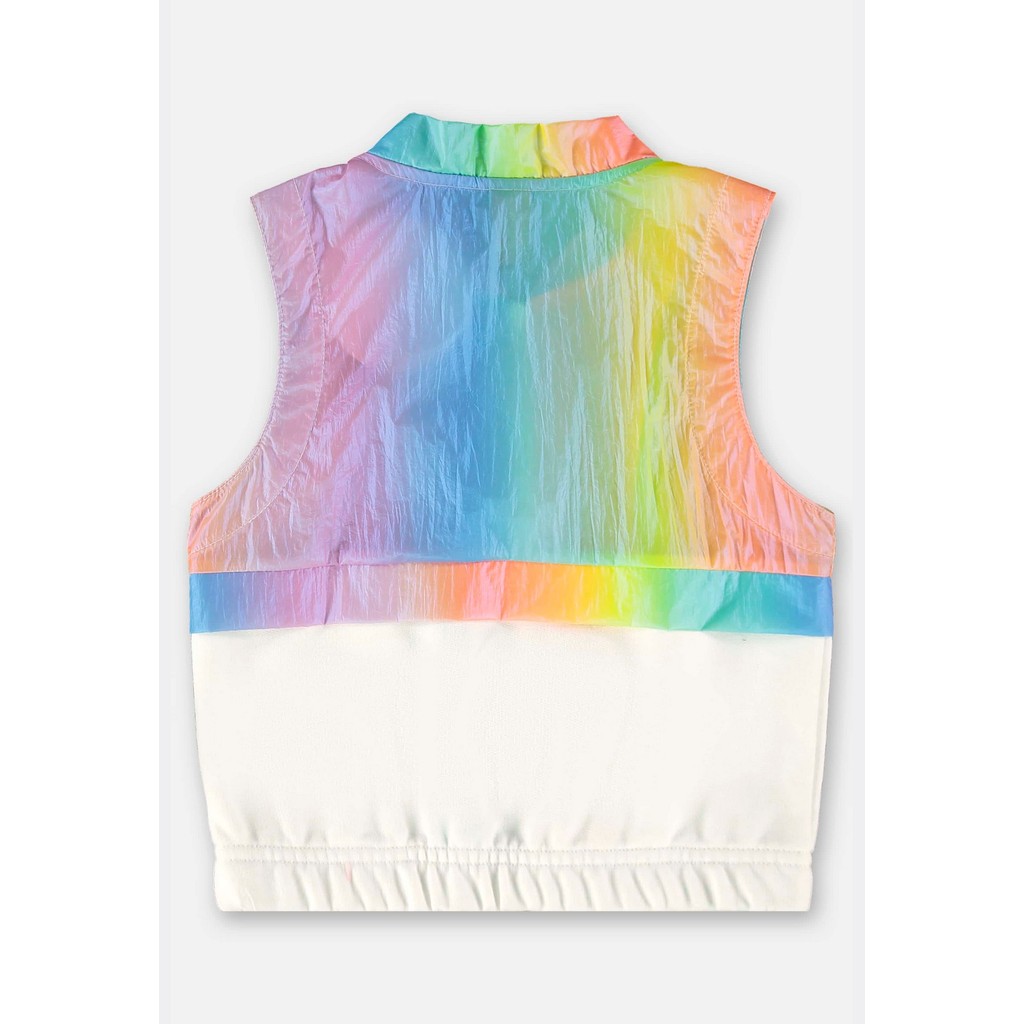 Colete infantil feminino feito com uma combinação de moletom sem felpa e tecido corta-vento, proporcionando conforto e proteção contra o vento, mantendo a liberdade de movimento para as brincadeiras. Conta com um zíper frontal destacável e gola alta, garantindo um ajuste seguro e confortável. A estampa colorida adiciona um visual divertido, tornando-a ideal para sobrepor camisetas ou blusas de manga longa, o colete é versátil e pode ser usado em várias ocasiões.Tecido: Colete: Moletom Sem Felpa e Tecido Corta VentoComposição: Parte superior: 100% poliamida / Parte inferior: 50% algodão 50% poliésterModelagem: JustaModelo: RegataModelo Mangas: RegataForro: NãoDecote: RedondoFechamento: Zíper