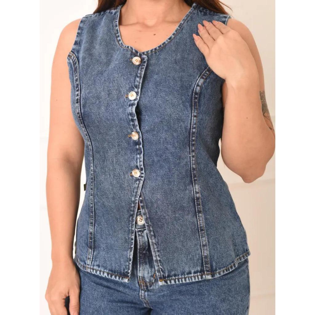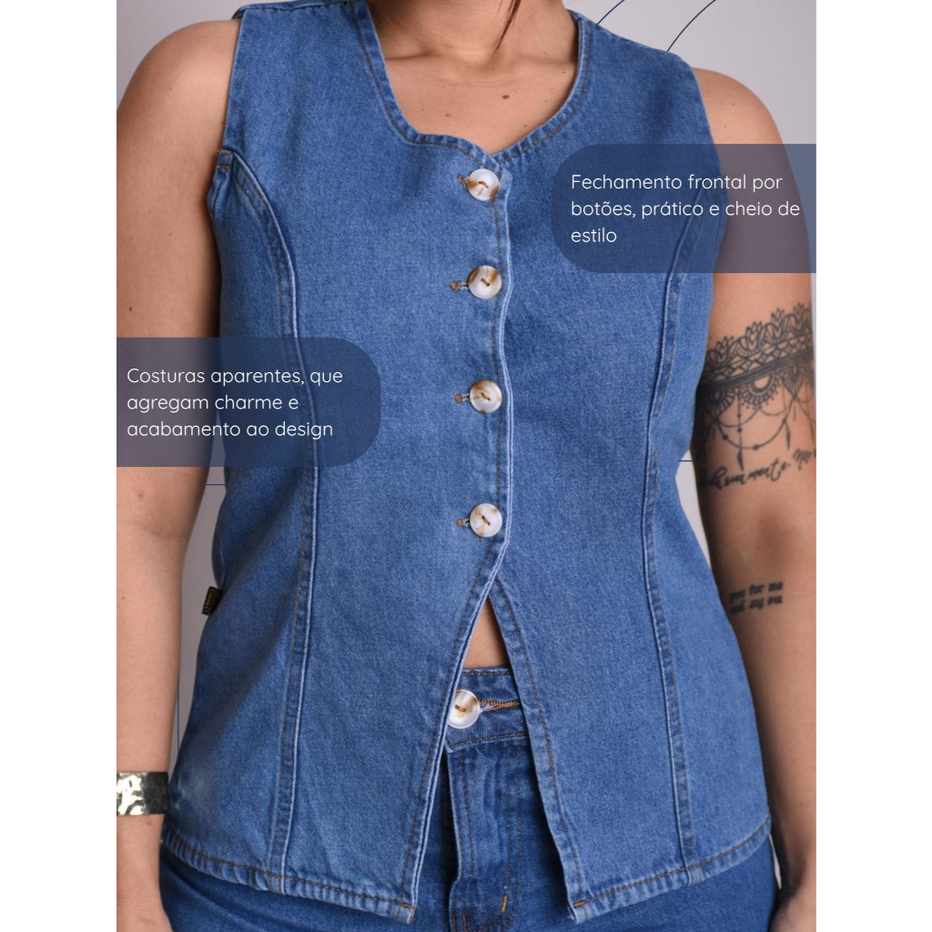 Colete Jeans Feminino Collen 100% Algodão Estilo e Qualidade Premium Verão Casual Fechamento Botões