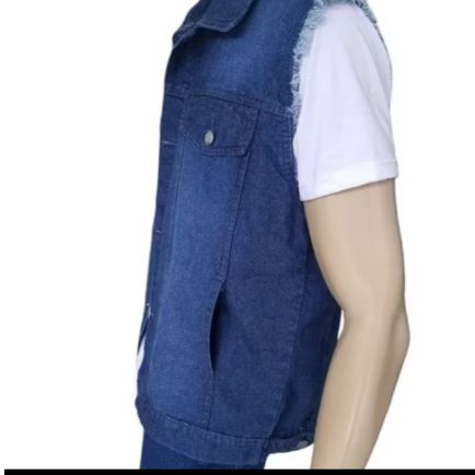Colete jeans masculina Tecido jeans 100%algodao,fechamento com botão Esse colete jeans masculino combina estilo urbano e praticidade em uma peça versátil. O design conta com dois bolsos decorativos no peito (bolsos falsos, apenas com abas e botões) que reforçam o visual clássico do jeans. Nas laterais, possui dois bolsos verdadeiros e funcionais, ideais para apoiar as mãos ou carregar pequenos objetos com conforto. Confeccionado em jeans resistente, o colete tem corte reto, gola tradicional e fechamento frontal por botões de pressão, oferecendo um caimento moderno que se adapta bem a camisetas ou camisas. Perfeito para compor looks casuais, sobreposições e produções com personalidade.