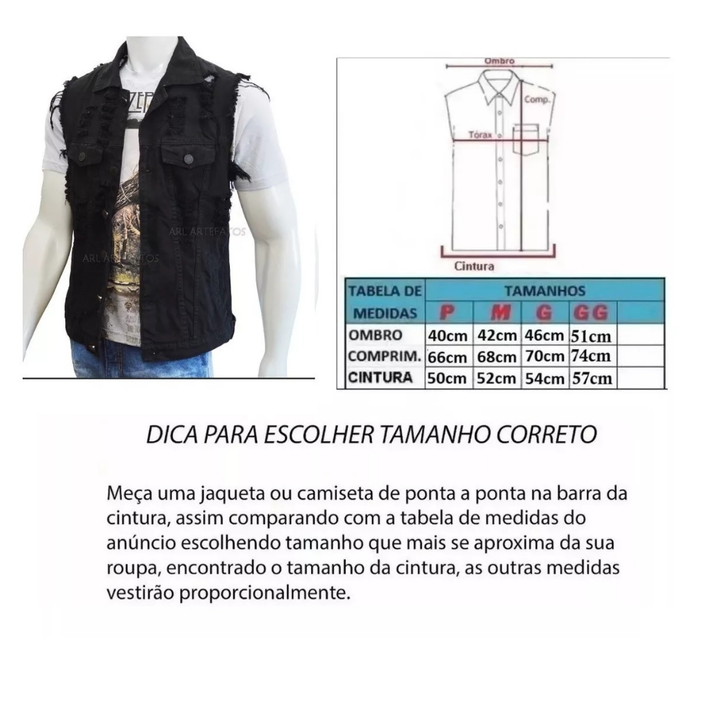 | Colete Jeans Masculino Rasgado Destroyed Moto este produto | R$ 169,00 | — | 4.9/5 | — |