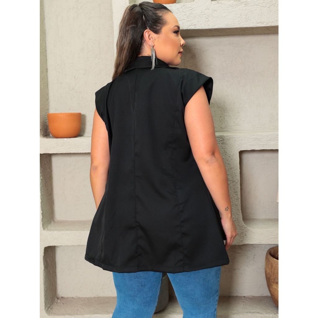 Colete Longo Alfaiataria Plus Size Feminino Elegante Chic G2 e G3