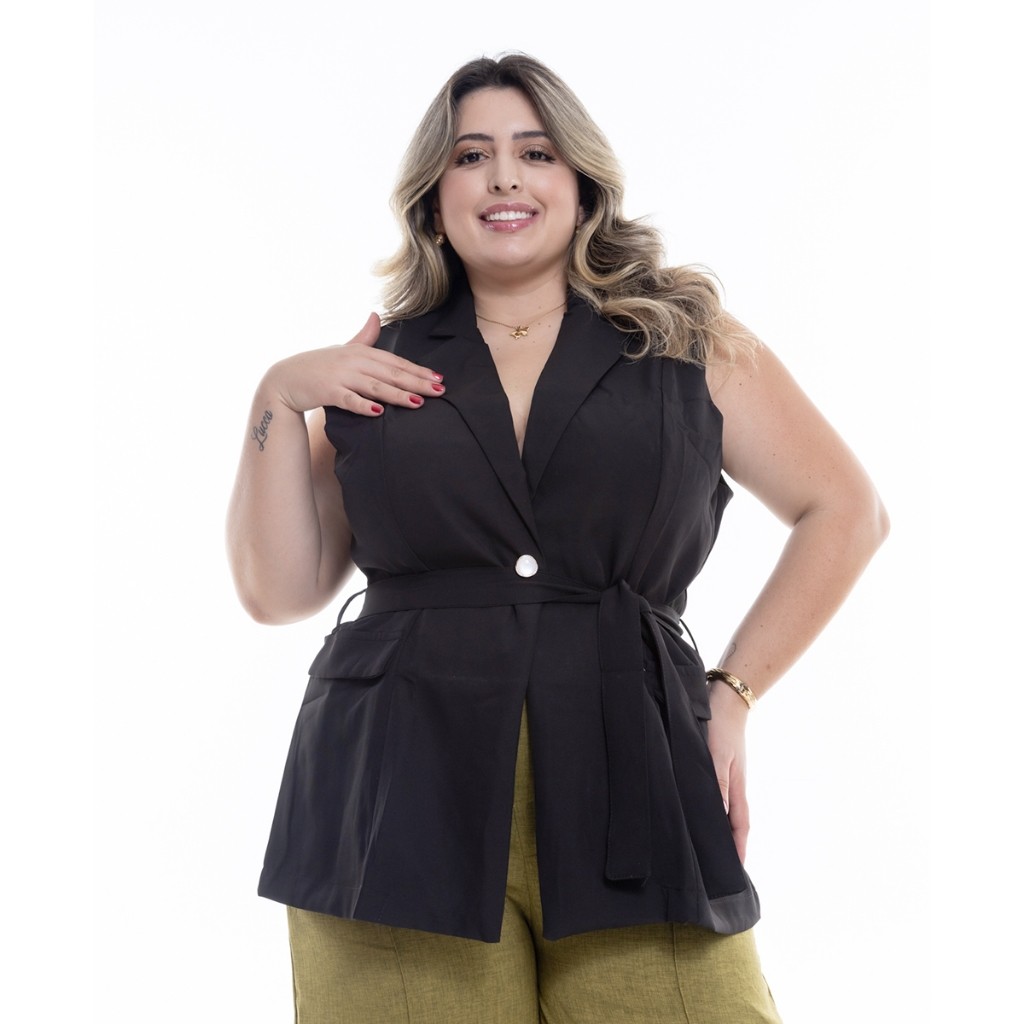| Colete Longo Plus Size Com Cinto Para Mulheres Em Alfaiataria De Mo... este produto | R$ 65,00 | 46% | 4.9/5 | — |