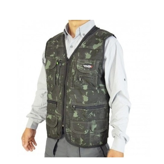 Colete Mtk Fotografo Pesca Biologo Free 14 Bolsos Caqui preto Verde Camuflado Poliamida