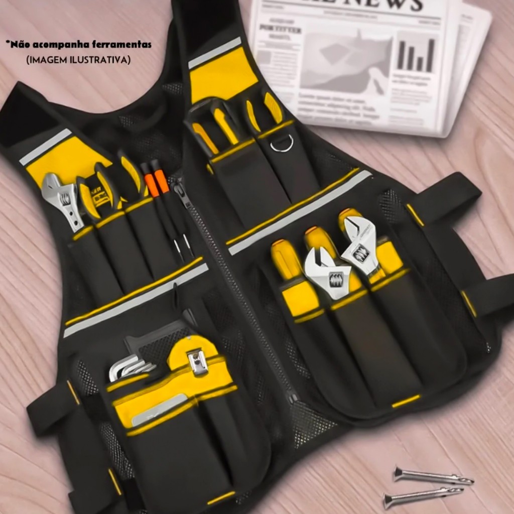 Colete Porta Ferramenta Profissional Ajustável Vários Bolsos