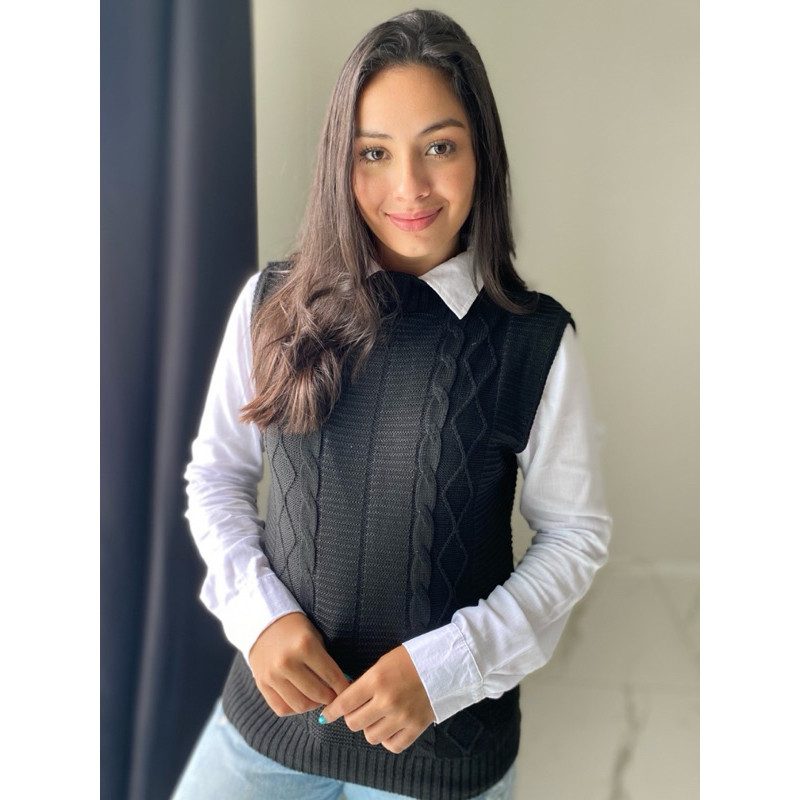 Colete Tricot Trança gola alta sobre posição sueter max colete moda feminina tricô blogueira inverno