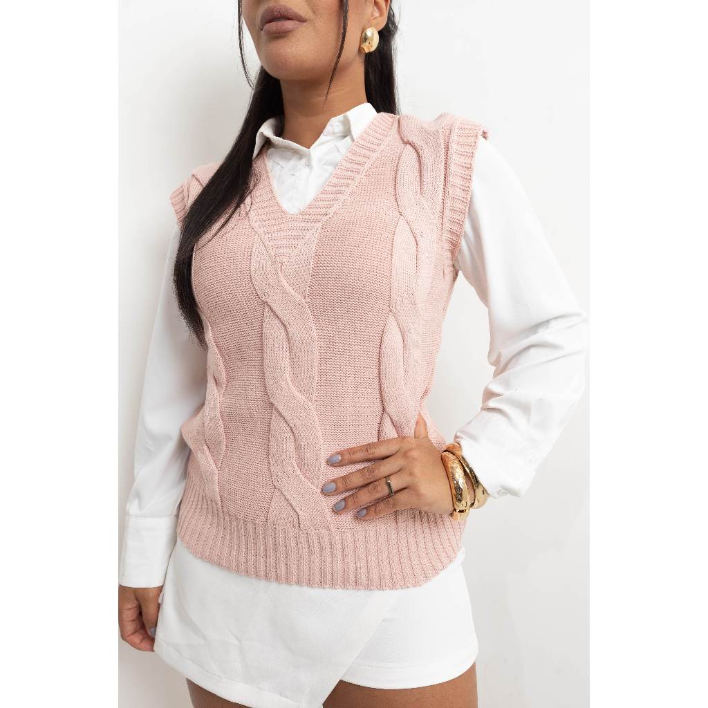 Colete Tricot Tranças Moda Feminina Inverno | Max Colete Regata Suéter Tricot Feminino Inverno