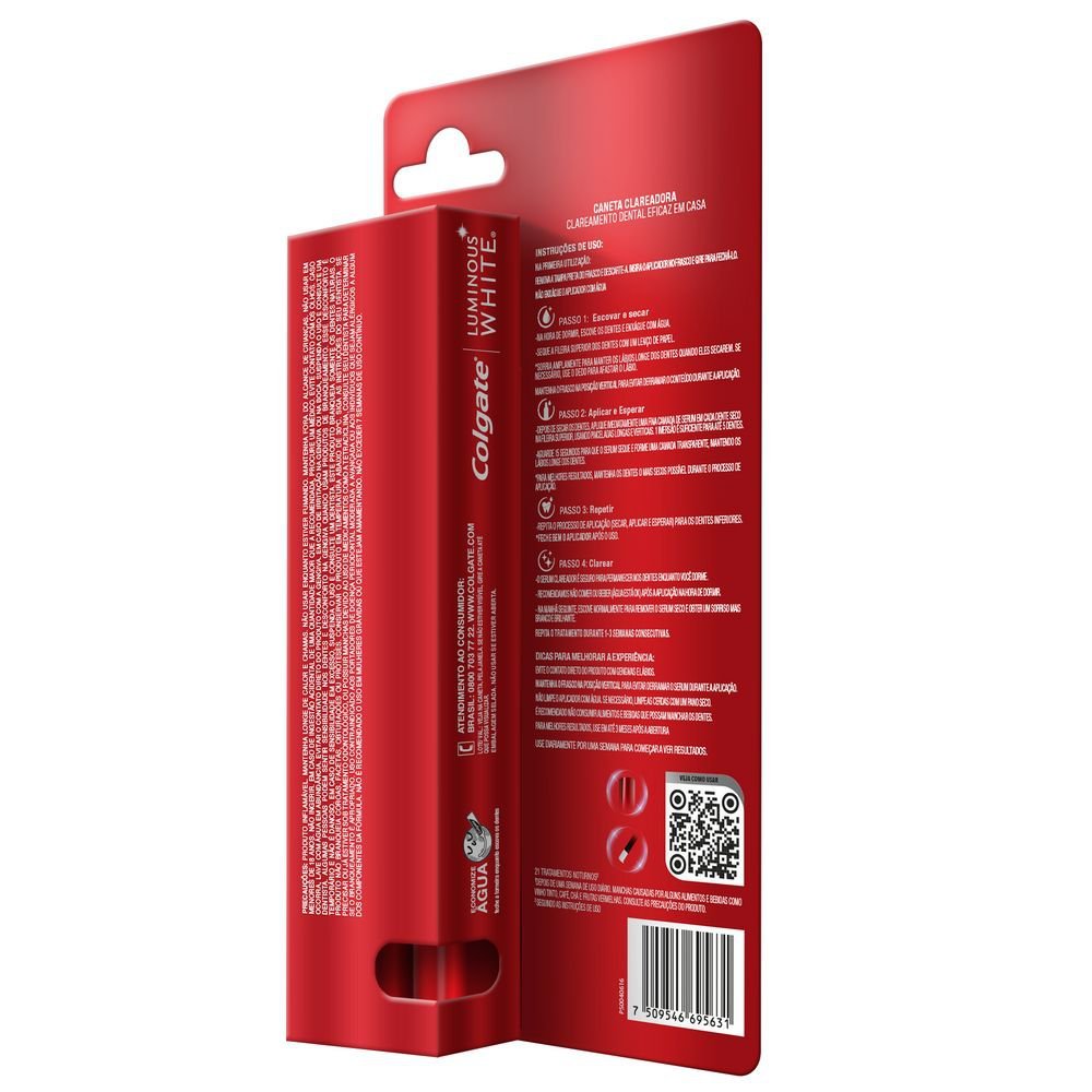 A Caneta Clareadora Colgate Luminous White Gloss é o aliado perfeito para quem busca um sorriso mais branco e radiante com a máxima praticidade. Sua fórmula avançada foi desenvolvida para remover manchas superficiais de forma eficaz e segura, agindo diretamente no esmalte dental para devolver o brilho natural. Com um design compacto e elegante, ela se adapta facilmente à sua rotina, permitindo que você cuide da estética do seu sorriso em qualquer lugar, garantindo resultados visíveis com o uso contínuo. O diferencial deste produto está na aplicação precisa e confortável proporcionada pelo seu pincel aplicador, que alcança cada detalhe dos dentes. O gel de secagem rápida adere suavemente à superfície dental, combatendo o amarelado causado por café, chá e outros alimentos sem causar sensibilidade excessiva. Basta aplicar uma fina camada sobre os dentes secos para que a tecnologia comece a agir, oferecendo um acabamento iluminado que realça a beleza do seu rosto de maneira imediata e prática. Com 2,5ml de rendimento, a caneta oferece um tratamento duradouro e confiável, chancelado pela expertise da Colgate em saúde bucal. É a solução ideal para quem não tem tempo para tratamentos longos, mas não abre mão de uma aparência impecável e de uma autoestima elevada. Ao incluir este item no seu dia a dia, você garante um sorriso renovado, pronto para brilhar em fotos e encontros sociais com a segurança de um produto clinicamente testado.