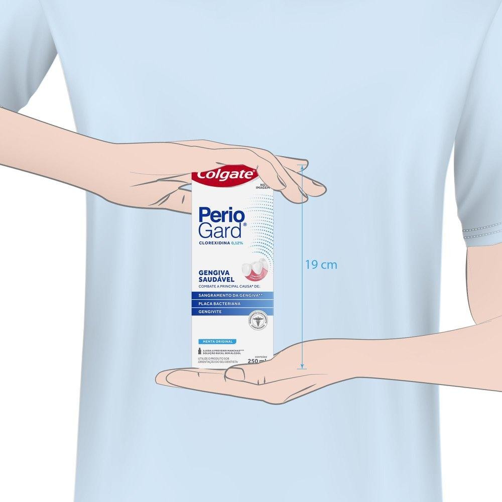 *Produto Original* *Atenção:* Venda exclusiva para pessoa física. Pedidos com CNPJ serão cancelados. Enxaguante Bucal Colgate Periogard Menta Original sem álcool contém 0,12% de clorexidina, ideal para manter a gengiva saudável. Ele é seguro e eficaz para a prevenção da gengivite. - Gengiva saudável: combate problemas de gengivas causados por bactéria, a principal causa do sangramento na gengiva (o enxágue diário ajuda a remover a placa bacteriana, prevenindo o sangramento da gengiva), como a placa bacteriana e a gengivite para uma melhor higiene bucal. - Fórmula avançada: com 0,12% de clorexidina, ingrediente antibacteriano recomendado por especialistas em odontologia para combater problemas na gengiva. - Redução de sangramento: diminui em 48% o sangramento na gengiva e em 54% a placa bacteriana. - Resultados: com ingredientes clinicamente comprovados. - Recomendação: é recomendado para uso por até 28 dias. Complete o tratamento: use o Creme Dental Colgate PerioGard e a Escova Dental Extra Suave também de Colgate PerioGard. Ingredientes: Aqua/água/agua, glycerin/glicerol/glicerina, propylene glycol/propilenoglicol/propilenglicol, sorbitol, pentasodium triphosphate/trifosfato pentassódico/ trifosfato de pentasodio, citric acid/ácido cítrico, sodium lauryl sulfate/laurilsulfato de sódio, benzil alcohol/álcool benzílico/alcohol bencílico, poloxamer 407/poloxaleno 407/poloxámero 407, aroma/sabor, chlorhexidine digluconate/digliconato de clorexidina/digluconato de clorohexidina, sodium saccharin/sacarina sódica, sucralose/sucralosa, cl 42051/azul merantina 131 /azul ácido 3 (cl 42051). Modo de Uso: O uso de Periogard deve ser indicado após profilaxia em consultório. Produto destinado ao uso por até quatro semanas em intervalos não maiores que seis meses. Os usuários devem ser reavaliados e submetidos a profilaxia. Encha a tampa até a linha tracejada (15ml) de solução não diluída. Bocheche por 30 segundos, pela manhã e à noite, após a escovação. Elimine o produto após o enxágue.